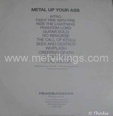 Name :Metal Up Your Ass - concertdate : 01.12.1984 - label : Plain red - vinylcolor : White - rarity : - format : 2LP